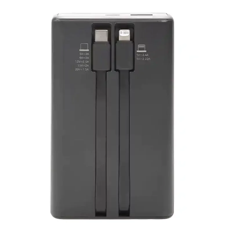 ظرقیت:۲۰۰۰۰MAH ولتاژ ورودی:type-c=۵V-۲A/۹V-۲A lightning=۵V-۲A/۹V-۲A ۴.۵V-۵A ۵V-۴.۵A ۵V-۳A۹V-۲A ۱۲V-۱.۵A (USB-A) F ۴.۵V-۵A ۵V-۴.۵A ۵V-۳A۹V-۲A ۱۲V-۱.۵A (Type-C CABLE) ۵V-۲. ۴A ۹V-۲.۲۲A ۱۲V-۱.۶۷A (Lightning CABLE)