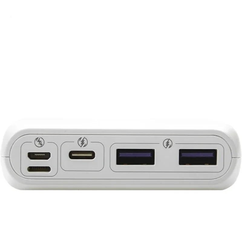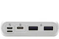 کنترل ها و کلیدها : کلید روشن و خاموش پورت ورودی : ۳ عدد (۱ پورت ورودی لایتنینگ، ۱ پورت ورودی Type-C و ۱ میکرو یو اس بی) تعداد پورت خروجی : ۳ عدد (یک عدد Type-C, دو عدد USB) قابلیت شارژ همزمان : قابلیت شارژ همزمان ۳ دستگاه نحوه نمایش میزان شارژ باتری : نمایشگر دیجیتال کابل متصل : ندارد شارژ سریع : دارد شارژ بی سیم : ندارد شدت جریان ورودی : MICRO USB: ۲A, Lightning: ۲A, Type-C: ۳A - ۲A -۲.۵A - ۱.۵A ولتاژ ورودی : MICRO USB: ۵V/۹V, Lightning: ۵V/۹V, Type-C: ۵V/۹V/۱۲V/۱۵V/۲۰V شدت جریان خروجی : Type-C: ۳A/۲.۵A/۲A/۱.۵A, USB-A۱,A۲: ۵A/۴.۵A/۲A/۱.۵A ولتاژ خروجی : Type-C: ۵V/۹V/۱۲V/۱۵V/۲۰V, USB-A۱,A۲: ۴.۵V/۵V/۹V/۱۲V توان خروجی کلی : ۳۰ وات ظرفیت اسمی : ۲۰۰۰۰ میلی آمپر ساعت
