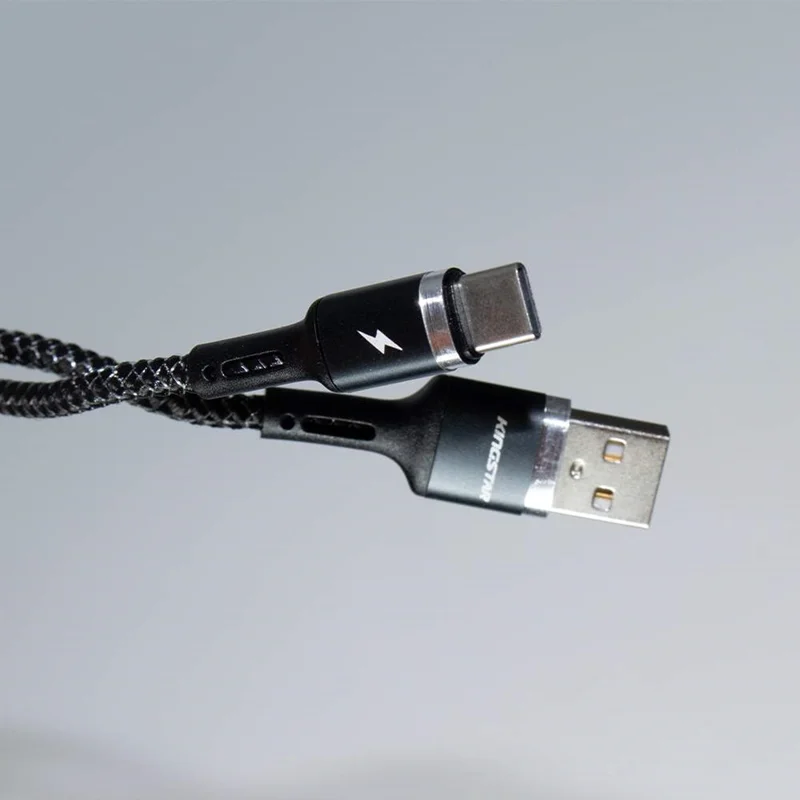 شما با استفاده از کابل تایپ سی کینگ استار مدل K345C میتوانید علاوه بر شارژ دستگاه اندروید خود، اطلاعاتتان را نیز با سرعت بالا منتقل کنید. در یک سمت کابل فست شارژ K345C یک کانکتور Type-C و در سمت دیگر آن یک کانکتور USB وجود دارد. سمت Type-C آن مناسب برای تمامی دستگاههای اندروید مجهز به این نوع درگاه میباشد. قسمت کانکتور USB آن با لپتاپ، شارژرهای دیواری، پاوربانک و دیگر دستگاههای دارای این درگاه سازگار است و شما میتوانید از این کابل برای شارژ با سرعت بالا و انتقال اطلاعات استفاده نمایید. مقدار شدت جریان خروجی این کابل 2.4A است. کابل تایپ سی کینگ استار مدل K345C به طول 100 سانتیمتر و با وزن 34.4 گرم، با روکشی از جنس پلاستیک بافته شده در رنگ مشکی عرضه شده است. از مزایای مهم این نوع روکش میتوان به استحکام آن در برابر کشیده شدن و خم شدگی تا 1500 بار اشاره کرد. سرعت انتقال داده آن نیز 480MB/S میباشد.
