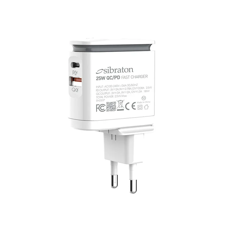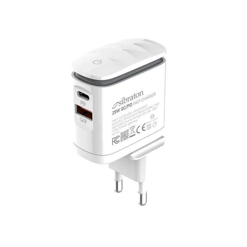 شارژرهای دیواری (وال شارژر یا به اصطلاح سریهای شارژر) عموما یکی از پرمصرفترین لوازم جانبی الکترونیکی هستند. داشتن یک شارژر دیواری با کیفیت میتواند علاوه بر حفظ سلامت باتری گوشی موبایل، زمان شارژ شدن باتری گوشی را هم کاهش دهد. از این رو برند سیبراتون با بکارگیری از تجربیات چندین ساله خود از سری جدید شارژر های دیواری رونمایی کرده است. SW2225C PD با توان خروجی 25 وات در حالت بیشینه و با بهرهوری از تکنولوژی Power Delivery و Quick Charge3.0 مناسب برای دستگاه های فست شارژ با توان مورد نیاز ذکر شده میباشد. استفاده از صفحات مسی و آلومینیومی پایداری حرارتی خوبی را برای این شارژر ایجاد کرده است. درگاه USB با توان 18 وات و درگاه Type-C با توان 25 وات، خروجی های این شارژر هستند. جنس شارژر دیواری سیبراتون مدل SW2225C PD از پلاستیک ABS با کیفیت بالا ساخته شده است که دارای قابلیت ضد اشتعال است. وجود یه لامپ LED لمسی نیز از ویژگی های ظاهری این شارژر میباشد.