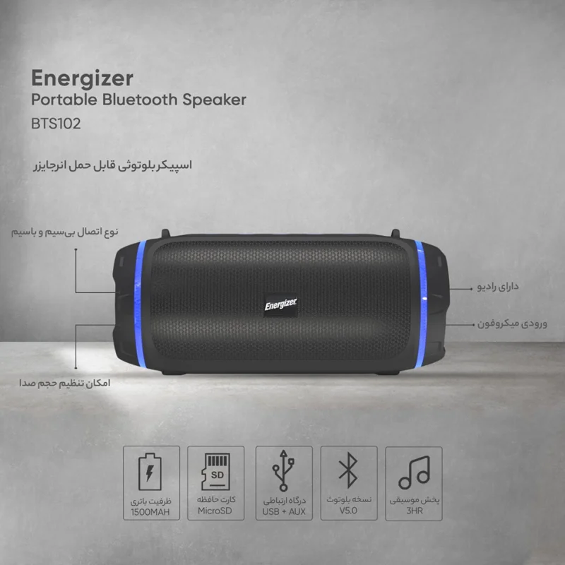 این روزها کمتر کسی را می یابید که با کمپانی بزرگ انرجایزر آشنا نباشد، اسپیکر بلوتوثی BTS102 انرجایزر نیز محصولی از این کمپانی است. این محصول از کیفیت صدای بسیار بالایی برخوردار است.
