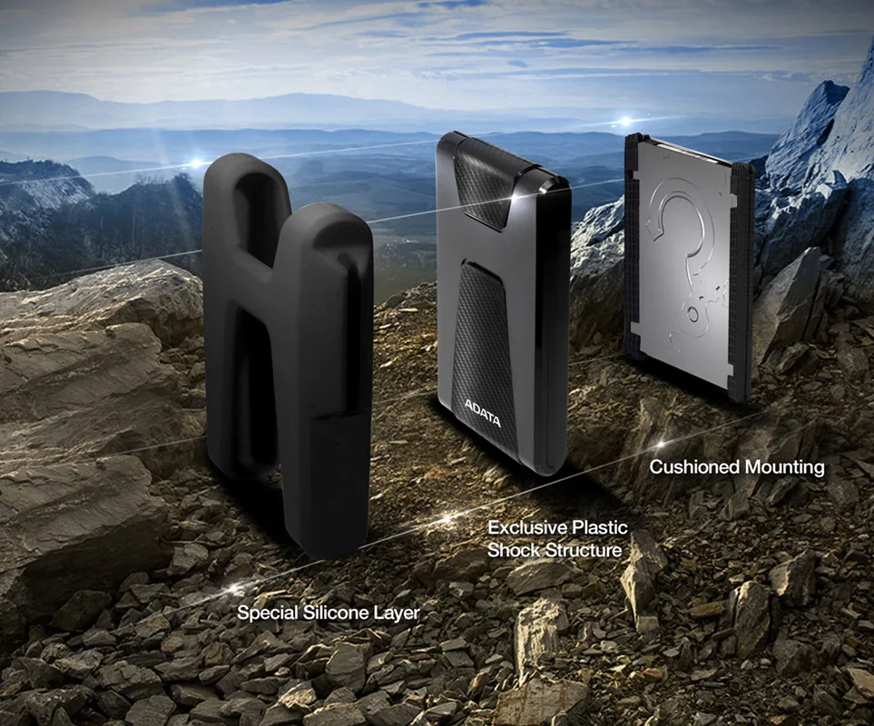 هارددیسک HD680 با بهره گیری از فناوری انحصاری شوک سنسور ای دیتا، به منظور حفاظت هرچه بهتر از اطلاعات ارزشمند شما با وارد شدن هرگونه شوک خارجی به هارددیسک، فعالیت های آن را متوقف نموده و نشانگر آن به حالت قرمز چشمکزن در میآید. پس از برطرف شدن شوک وارد شده، HD680 به فعالیت عادی خود باز میگردد و نشانگر آن به حالت آبی در میآید. بنابراین به کمک این نشانگر ویژه همواره از عملکرد هارددیسک خود مطلع خواهید بود.