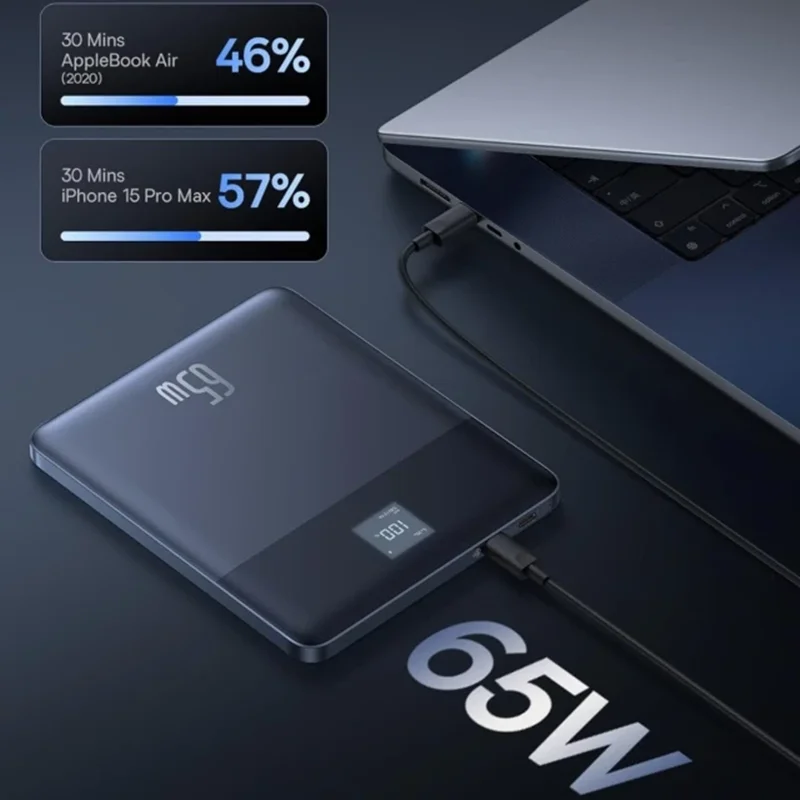 شارژر همراه هوشمند و فوق العاده باریک بیسوس مدل PPBLD2-65 در دنیای امروزی پر از فناوری، ابزارهای قابل حمل و کارآمد بسیاری وجود دارند که به ما کمک میکنند تا در تمام فعالیتهای روزانهمان موثرتر و بهتر عمل کنیم. یکی از این ابزارها، پاور بانک یا شارژر همراه هست که به عنوان منبع تغذیه قابل حمل برای دستگاههای الکترونیکی مانند گوشیهای هوشمند، تبلتها، دوربینها و دیگر دستگاههای قابل حمل عمل میکند. پاوربانک هوشمند و سوپر باریک تایپسی برند بیسوس مدل Blade 2 PPBLD2-65 با ظرفیت زیاد 12000mAh، پشتیبانی از اپلیکیشن، اتصال بلوتوثی به گوشی، صفحه نمایش دیجیتالی و پشتیبانی از انواع پروتکلهای شارژ سریع با حداکثر توان خروجی 65 وات یکی از گزینههای جذاب برای افرادی است که به دنبال یک منبع تغذیه قابل اعتماد و کارآمد برای شارژ گوشی، تبلت، لپتاپ، آیپد، آیفون، ایرپاد و سایر دستگاههای هوشمند خود هستند. فوق العاده باریک شارژر پرتابل بیسوس Blade 2 Ultra Slim با طراحی فوقالعاده نازک، با ضخامت تنها 7.3 میلیمتر در نازکترین نقطه خود، از آیفون 15 پرو هم نازکتر است و به عنوان نازکترین باتری همراه موجود در بازار، به راحتی در کیف لپتاپ جا میشود بدون اینکه فضای زیادی اشغال کند. این شارژر برای سفرهای دریایی، مسافرتهای اروپایی و پروازهای طولانی ضروری است. شارژ همزمان 2 دستگاه روی بدنه شارژر قابل حمل Baseus Blade 2 PPBLD2-65، دو پورت دوطرفه Type-C با حداکثر توان خروجی 65 وات قرار دارد که به شما امکان میدهد همزمان دو دستگاه را شارژ کنید. همچنین، هر دو پورت تایپسی به شما این قابلیت را میدهند تا پاوربانک با حداکثر توان ورودی 65 وات به سرعت شارژ کنید. شارژ سریع لپتاپ 65W پاور بانک باریک بیسوس Blade 2 مجهز به انواع فناوریهای شارژ سریع PD2.0, PD3.0, QC2.0, QC3, VOOC, FCP, AFC, BC1.2, Apple 2.4 و SCP است که امکان شارژ در کوتاهترین زمان ممکن را برای شما به ارمغان میآورد. با پشتیبانی از شارژ سریع PD 65W با پورت Type-C به شما این امکان را میدهد تا تنها در عرض 30 دقیقه، بتوانید بوک ایر 2020 را تا %46 شارژ نمایید.
