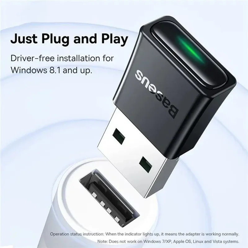 امروزه بسیاری از فناوری ها رو به بیسیم شدن می روند و دلیل آن هم مشخص است، محدودیت داشتن سیمها شما را همیشه به یک مکان خاص محدود میکند و نمیگذارد آزادانه به کارهای خود بپردازید. برای اتصال بیسیم لوازم الکترونیکی به کامپیوترهایی که گیرنده بلوتوث ندارند، نیاز به یک دانگل گیرنده بلوتوثی دارید. کمپانی Baseus برای رفع این مشکل دست به تولید دانگل بلوتوث BA07 زده که به شما امکان اتصال سریع از طریق بلوتوث به کامپیوتر را می دهد. طراحی کلی بدنه ساختار کلی بدنه Baseus Wireless Adaptors BA07 از جنس پلاستیک ABS و آلیاژ آلومینیوم بوده, ابعاد کوچک این دانگل باعث شده هنگام اتصال آن به پورت کامپیوتر فضای زیادی را اشغال نکند. دانگل بلوتوث Baseus به لطف تراشه 5.3 خود، انتقال داده سریعتر و اتصال پایدار را در فاصله 20 متری فراهم می کند. از Plug and Play پشتیبانی می کند و به طور گسترده با دستگاه های مجهز به پورت USB-A سازگار است. می تواند به طور همزمان به 5 دستگاه متصل شود و صدای Hi-Fi با وضوح بالا ارائه می دهد. این دستگاه دارای سرعت انتقال پهنای باند 16 مگابیت بر ثانیه است. این در عمل به چه معناست؟ انتقال داده ها و فایل ها فقط چند ثانیه طول می کشد. همچنین همگام سازی صوتی و تصویری عالی را ارائه می دهد. در عین حال، با مقاومت بالا در برابر تداخل مشخص می شود - بنابراین لازم نیست نگران تاخیر و وقفه در انتقال باشید. انتقال HD به شما امکان می دهد از صدای واضح لذت ببرید - صداهای بازتولید شده طبیعی و پر از جزئیات هستند. چه در حال گوش دادن به موسیقی، تماشای فیلم یا استفاده از سایر رسانه های چندرسانه ای باشید، با آداپتور Baseus می توانید از کیفیت صدای عالی لذت ببرید! دانگل بلوتوث Baseus به طور گسترده ای سازگار است و به شما امکان می دهد تا حداکثر 5 دستگاه را به طور همزمان وصل کنید، مانند هدفون بی سیم، بلندگو، صفحه کلید، ماوس، تلفن، تبلت یا کنترلر بازی. به لطف ویژگی Plug and Play، نیازی به نصب درایورهای اضافی ندارید - دانگل بلوتوث هنگام اتصال به دستگاه های Windows 8.1، 10 و 11 فوراً کار می کند. از راحتی و انعطاف پذیری لذت ببرید!