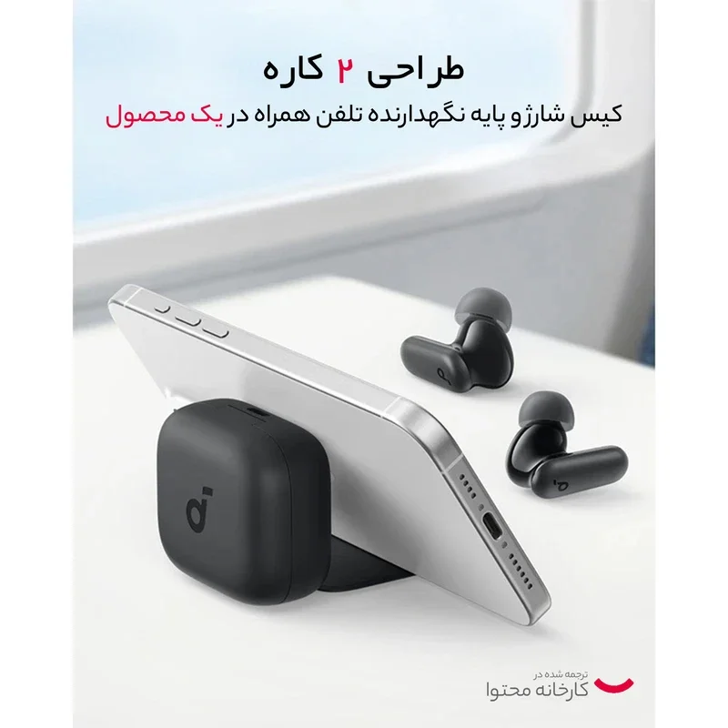 یکی از نقاط قوت هدفون انکر R50i NC طراحی مینیمال و کاربردی آن است. ابعاد این هدفون ۱۰.۸x۱۰.۸x۳.۶ میلیمتر بوده و وزن آن تنها ۱۰۰ گرم است. طراحی ارگونومیک و سبک این محصول باعث میشود که در استفاده طولانی مدت گوشهای شما اصلا احساس خستگی نکنند. همچنین، همراه داشتن سریهای سیلیکونی اضافی به شما امکان میدهد که بهترین سایز را برای گوش خود انتخاب کنید. ویژگی جذاب دیگر، وجود پایه نگهدارنده موبایل به صورت مخفی در محفظه شارژ است. این ویژگی کوچک اما کاربردی نشان میدهد که انکر به جزئیات محصول توجه ویژهای داشته است. هدفون انکر R50i NC با درایورهای ۱۰ میلیمتری، صدایی با کیفیت بالا و باس قدرتمند ارائه میدهد. فناوری BassUp به کار رفته در این هدفون، عمق و قدرت باسها را افزایش داده است. این هدفون برای علاقهمندان به موسیقی که به دنبال صدای غنی و شفاف هستند، یک انتخاب مناسب است. برجستهترین ویژگی این هدفون، قابلیت نویز کنسلینگ فعال (ANC) است که تا ۴۲ دسیبل نویزهای محیطی را کاهش میدهد. همین قابلیت انکر R50i NCرا به یک همراه عالی در فضاهای شلوغ و پر سر و صدا تبدیل میکند.