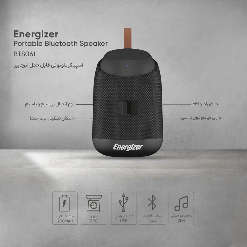 با اسپیکر بلوتوثی قابل حمل انرجایزر مدل BTS061، به دنیای موسیقی بیمرز قدم بگذارید. صدای باکیفیت، طراحی شیک و وزن سبک این اسپیکر، همسفری ایدهآل برای سفرها و تفریحات شماست. با باتری قوی و اتصال بیسیم، هر لحظه و هر جا از موسیقی لذت ببرید. فرصت را از دست ندهید و تجربهای متفاوت از صدا را احساس کنید!