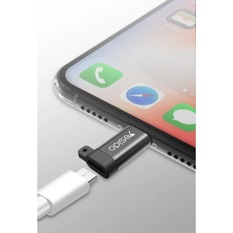 تبدیل OTG میکرو به لایتنینگ Yesido GS05 محصولی از شرکت یسیدو می باشد که برند یسیدو توانسته است در سالهای اخیر با محصولات باکیفیتش سهم عمده ای را از بازار لوازم جانبی جهان به دست بیاورد. ابعاد تبدیل micro USB به لایتنینگ یسیدو مدل GS05 بسیار کوچک است که به راحتی می توانید توسط جیب و یا کیف خود همیشه به همراه خود داشته باشید و در مواقع لزوم از این محصول استفاده نمایید . مبدل OTG یسیدو GS05 به شما کمک می کند محصولات خانواده اپل را با کابل دارای کانکتور میکرو یو اس بی به خوبی و با شدت جریان ۲٫۴ آمپر شارژ نمایید ,همچنین میتوانید توسط این محصول به انتقال اطلاعات با سرعت بالا بپردازید. تبدیل micro USB به لایتنینگ یسیدو مدل GS05 با تمام دستگاه های داری پورت micro USB یا lightning سازگار می باشد که شما می توانید برای هر دستگاهی از این تبدیل استفاده نمائید.