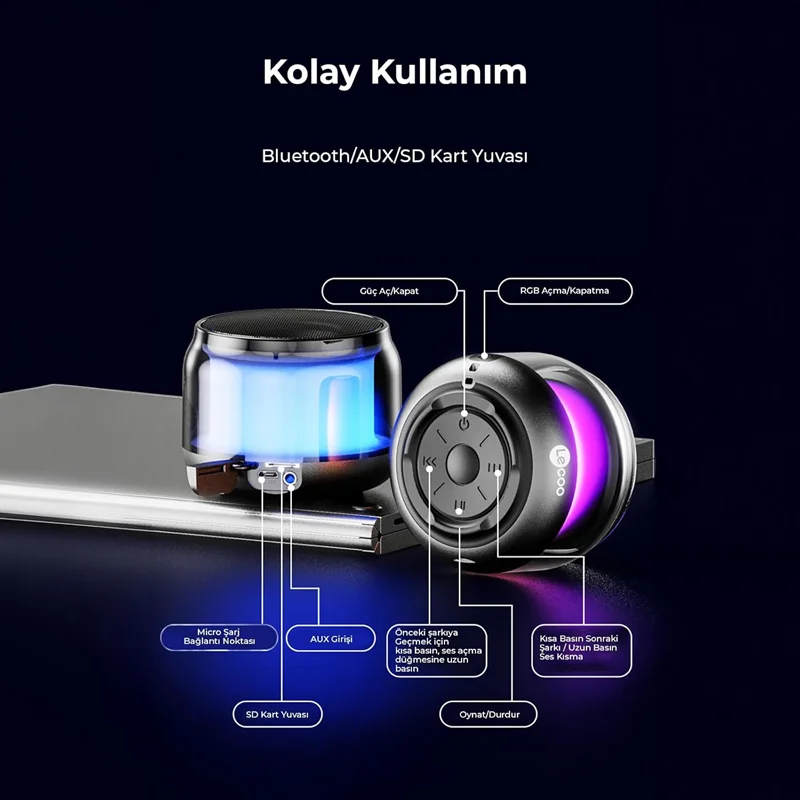 اسپیکر بلوتوثی قابل حمل لکو مدل DS106 Pro گزینه مناسبی برای دوست داران موسیقی می باشد. این اسپیکر با نورپردازی جذاب می تواند جلوه بصری جذابی به محیط بدهد. از قابلیت های این اسپیکر می توان به باطری 500 میلی آمپری و بلوتوث ورژن 5 اشاره کرد. همچنین رابط کاربری زیر اسپیکر قرار گرفته است.