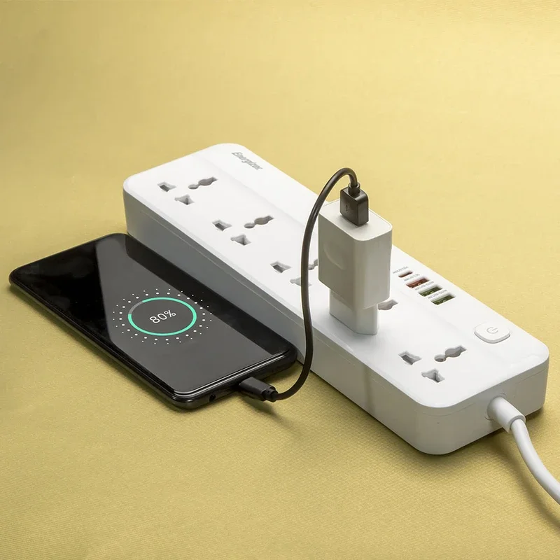برند انرجایزر (Energizer) پس از تولید موفق کالاهای الکترونیک و ورود بازار ایران، به تولید لوازم جانبی از جمله سه راهی برق روی آورد و محصولات باکیفیت و قیمت مناسبی را روانهی بازار کرد. این چند راهی برق در ابعاد 277.25*81.25*33.7 میلیمتر و وزن 472.9 گرم قادر است خروجی یک پریز برق شهری را به 5 پریز یونیورسال (سه شاخه)، 3 پورت USB و 1 پورت تایپ سی (Type-C) تبدیل کند و با انواع دوشاخه یا سهشاخههای بکار رفته در نقاط مختلف جغرافیایی سازگار است. همانطور که اشاره شد چند راهی برق انرجایزر مدل EPB2501EU به پورتهای USB و تایپ سی مجهز شده است که به کمک آنها میتوان با اتصال انواع سیم شارژ یا شارژر، دستگاههای دیجیتال و موبایل را به سادگی شارژ کرد. این پورتها که از فناوری فست شارژ پشتیبانی میکنند، دارای نرخ جریان و ولتاژ زیر هستند: USB-A: 5V/2.4A (12W Max – Auto ID) USB-A: 5V/3A – 9V/2A – 12V-1.5A (18W Max – QC) USB-C: 5V/3A , 9V/2.22A – 12V/1.67A (20W Max – PD) همچنین 5 پریز یونیورسال (سه شاخه) نیز دارای شدت جریان خروجی 10 آمپر و حداکثر توان خروجی 2500 وات خواهد بود. این محصول با طراحی سفید رنگ و با یک سیم به طول 2 متر ارائه شده است و با بدنهی کوچک و جمعوجور خود، جای چندانی را اشغال نمیکند. با این چندراهی برق انرجایزر میتوانید از شر تبدیلهای سهشاخه به دوشاخه خلاص شده و به دهکدهی جهانی وارد شوید. از دیگر نکات مهم این محصول جنس بدنه آن است که از پلاستیک با کیفیت و مقاوم ABS ساخته شده و ضد اشتعال است