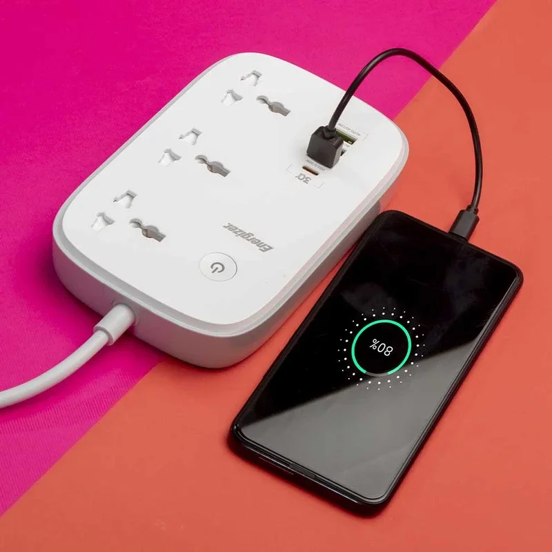 برند انرجایزر (Energizer) پس از تولید موفق کالاهای الکترونیک و ورود بازار ایران، به تولید لوازم جانبی از جمله سه راهی برق روی آورد و محصولات باکیفیت و قیمت مناسبی را روانهی بازار کرد. این چند راهی برق در ابعاد 112*178*30.7 میلیمتر و وزن 465.6 گرم قادر است خروجی یک پریز برق شهری را به 3 پریز یونیورسال (سه شاخه)، 3 پورت USB و یک پورت تایپ سی (Type-C) تبدیل کند و با انواع دوشاخه یا سهشاخههای بکار رفته در نقاط مختلف جغرافیایی سازگار است. همانطور که اشاره شد چند راهی برق انرجایزر مدل EPB2502EU به 3 پورت USB و 1 پورت تایپ سی مجهز شده است که به کمک آنها میتوان با اتصال انواع سیم شارژ یا شارژر، دستگاههای دیجیتال و موبایل را به سادگی شارژ کرد. این پورتها که از فناوریهای QC3.0 و PD3.0 پشتیبانی میکنند، دارای نرخ جریان ولتاژ زیر هستند: USB-A (Auto id output): 5V/2A (12W Max – Green) USB-A (QC output): 5V/3A , 9V/2A – 12V/1.5A (18W Max) USB-C: 5V/3A , 9V/3A – 12V/2.5A – 15V/2A – 20V/1.5A (30W Max – PD) همچنین سه پریز یونیورسال (سه شاخه) نیز دارای شدت جریان خروجی 10 آمپر و حداکثر توان خروجی 2500 وات خواهد بود. این محصول با طراحی سفید رنگ و با یک سیم به طول 2 متر ارائه شده است و با بدنهی کوچک و جمعوجور خود، جای چندانی را اشغال نمیکند. با چندراهی برق انرجایزر میتوانید از شر تبدیلهای سهشاخه به دوشاخه خلاص شده و به دهکدهی جهانی وارد شوید. از دیگر نکات مهم این محصول جنس بدنه آن است که از پلاستیک با کیفیت و مقاوم ABS ساخته شده و ضد اشتعال است.