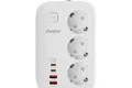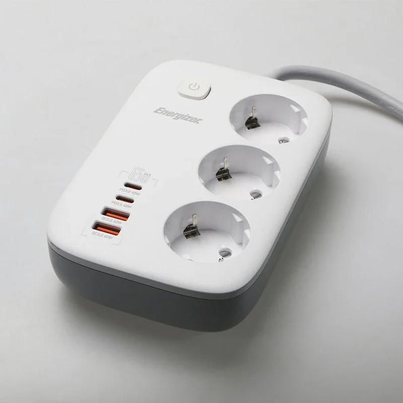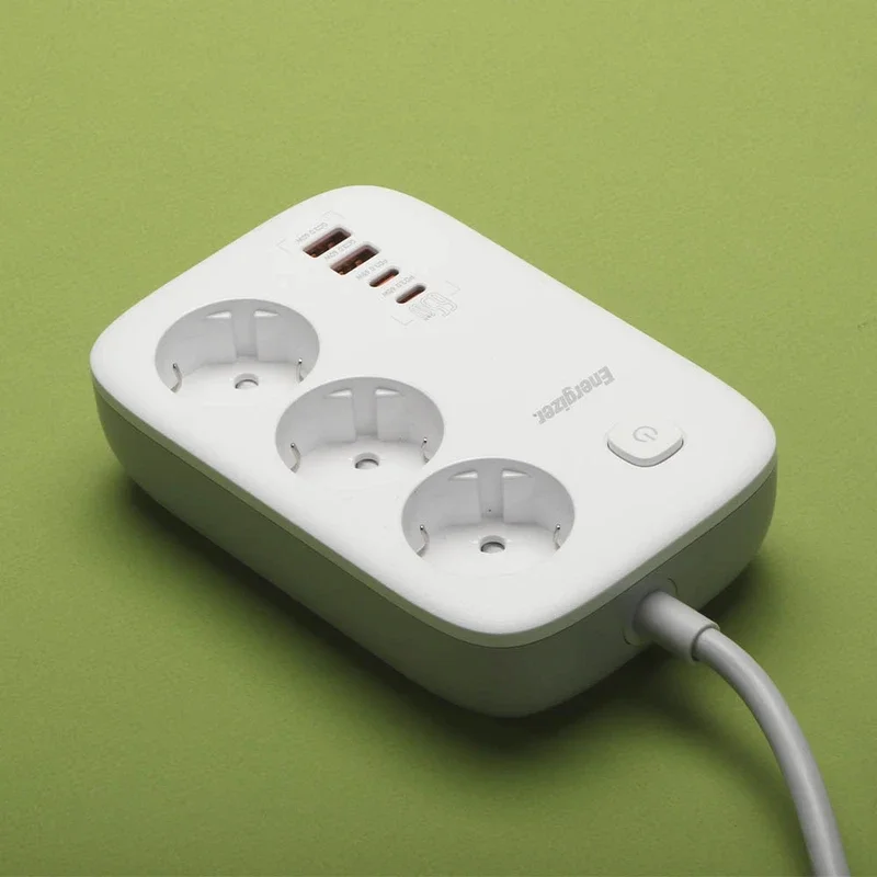 برند انرجایزر (Energizer) پس از تولید موفق کالاهای الکترونیک و ورود بازار ایران، به تولید لوازم جانبی از جمله سه راهی برق روی آورد و محصولات باکیفیت و قیمت مناسبی را روانهی بازار کرد. این چند راهی برق در ابعاد 102.9*155.9*42.5 میلیمتر و وزن 534 گرم قادر است خروجی یک پریز برق شهری را به 3 پریز برق، 2 پورت USB و 2 پورت تایپ سی (Type-C) تبدیل کند. همانطور که اشاره شد چند راهی برق انرجایزر مدل EPB3250W01EU به 2 پورت USB و 2 پورت تایپ سی مجهز شده است که به کمک آنها میتوان با اتصال انواع سیم شارژ یا شارژر، دستگاههای دیجیتال و موبایل را به سادگی شارژ کرد. این پورتها که از فناوری QC3.0 پشتیبانی میکنند، دارای نرخ جریان ولتاژ زیر هستند: USB-A: 4.5V/5A , 5V/4.5A – 5V/9V/12V/20V=3A (60W Max) USB-C: 5V/3A , 9V/3A – 12V/3A – 15V/3A – 20V/3.25A (65W Max) همچنین سه پریز برق معمولی این چندراهی نیز دارای شدت جریان خروجی 13 آمپر و حداکثر توان خروجی 3250 وات خواهد بود. این محصول با طراحی سفید رنگ و با یک سیم به طول 2 متر ارائه شده است و با بدنهی کوچک و جمعوجور خود، جای چندانی را اشغال نمیکند. با چندراهی برق انرجایزر میتوانید بجای استفاده از کلگیهای جداگانه برای شارژ تلفن همراه و دستگاههای دیجیتال خود، از یک همچین گجتی بهره بهره ببرید و از شر تبدیلهای دو به دو یا سه یه دو خلاص شوید. از دیگر نکات مهم این محصول جنس بدنه آن است که از پلاستیک با کیفیت و مقاوم ABS ساخته شده و ضد اشتعال تا دمای 850 درجه سانتی گراد است.