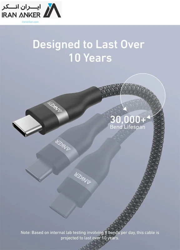 کابل شارژ فوق العاده بادوام: با طول عمر خمش ۳۰۰۰۰+ و توانایی تحمل وزن ۱۰۰ کیلوگرم بدون آسیب در قسمت سوکت، این کابل برای بیش از ۱۰ سال ساخته شده است.