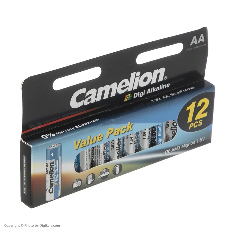 باتری قلمی کملیون مدل Digi Alkaline در بسته 12عددی تولید و عرضهشده است. اندازه آنها AA یا قلمی است. تکنولوژی که در تولید این نوع باتری بهکاررفته، آلکالاین بوده و دارای پایداری انرژی الکتریکی و عمر مفید است. ولتاژ این مدل از باتری های آلکالاین 1.5 ولت است و قابلیت شارژ مجدد ندارد، پس طبیعتاً نمیتوان پس از اتمام انرژی الکتریکی دوباره آن را شارژ و استفاده کرد. مدل «Digi Alkaline» از سری محصولات شرکت کملیون باتریهای قلیایی هستند و چندین برابر بیشتر از باتریهای معمولی ظرفیت دارند و درنتیجه سرویسدهی بیشتری را برای کاربران به همراه میآورند. بهطورکلی قیمت باتریهای آلکالاین از باتریهای معمولی بیشتر است اما با توجه به ظرفیت بیشتر این نوع از باتریها معمولاً بهصرفهتر هستند. این مدل گزینهای مناسب برای تأمین انرژی الکتریکی وسایلی مانند دستگاه فشارسنج، اسباب بازی ها و دیگر دستگاههایی است که انرژی موردنیازشان را از باتریهای قلمی تأمین میکنند.