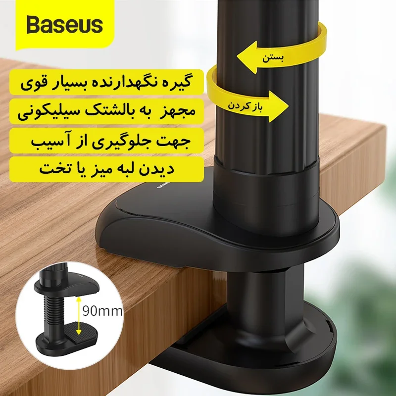 هولدر Otaku Life Rotary adjustment lazy محصولی از کمپانی Baseus بوده که توسط گیره قرار گرفته در قسمت انتهایی آن بر روی لبه میز متصل می شود و قادر است گوشی ها و تبلت هایی با ابعاد 4.7 تا 12.9 اینچ را به راحتی نگه دارد. این محصول دارای دو پایه است که با یک قطعه مفصل مانند به یکدیگر متصل شده اند و به راحتی می توان زاویه بین آن ها را تغییر داد؛ همچنین در انتهای یکی از پایه ها، قسمتی قرار گرفته که به راحتی به میز متصل می شود و با یک گیره پیچی به آن محکم بسته می شود، ضخامت میز و صفحه ای که بین این دو گیره نگهدارنده قرار می گیرد، تا 90 میلی متر خواهد بود. در انتهای پایه دیگر یک بازوی خرطومی قرار گرفته که به راحتی می توان به آن فرم و حالت داد تا در بهترین حالت خود قرار گیرد. بازوهای این محصول دارای قابلیت چرخش هستند و این امر آزادی عمل کاربر را بسیار افزایش داده است. جنس بدنه این محصول ترکیبی از فلز آلومینیوم و پلاستیک بوده که مقاومت آن را در برابر ضربه و فشار تا حد بالایی افزایش داده است. گیره سری هولدر Otaku Life Rotary adjustment lazy دارای یک بازو بوده که می توانید با باز کردن آن به راحتی گوشی خود را داخلش قرار دهید. بر روی لبه های این هولدر بالشتک های سیلیکونی قرار دارد که از ایجاد خط و خش بر روی بدنه گوشی جلوگیری می کند. گیره قرار گرفته در قسمت انتهای این هولدر قادر است تا 90 میلی متر باز شود تا بتوانید آن را بر روی لبه هر میزی متصل کرده و هیچ گونه محدودیتی برای کاربر به وجود نمی آورد. همان طور که گفته شد، قسمت بالایی این هولدر به صورت انعطاف پذیر طراحی شده تا تنظیم آن برای شما بسیار راحت باشد و نیاز به باز کردن گیره های محصول نداشته باشید. هولدر Baseus Otaku Life Rotary به شما کمک می کند تا بدون دخالت دست به تماشای فیلم، بر قراری تماس تصویری و ... بپردازید.