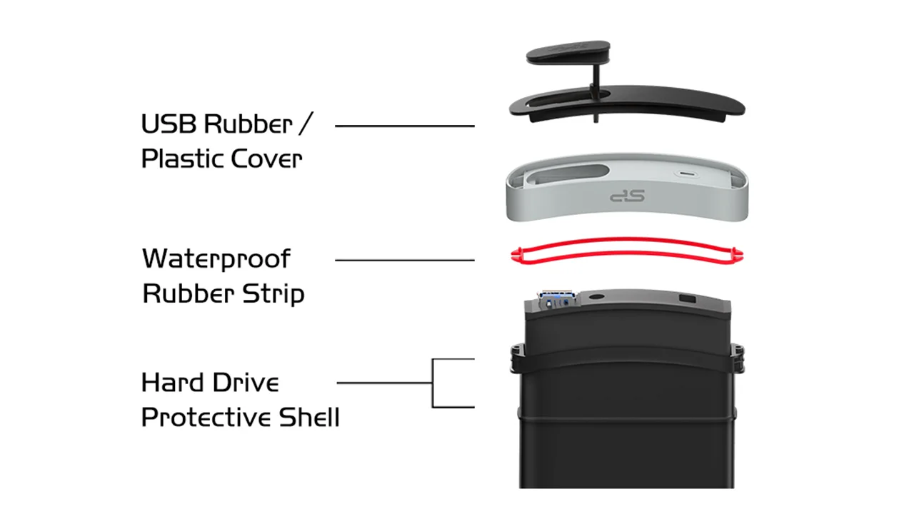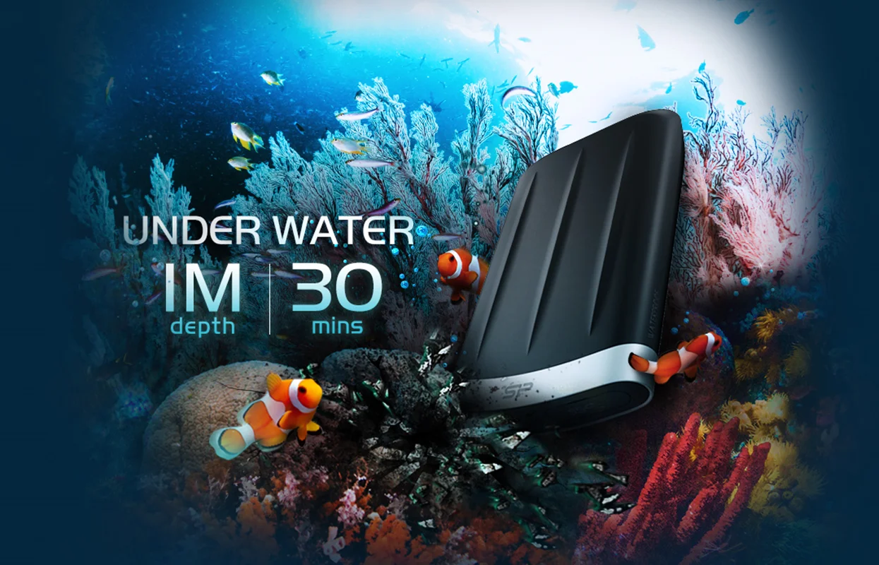 همانطور که از نام این محصول پیداست، ما با هاردی ضد ضربه از سیلیکون پاور روبهرو هستیم که طراحی چندلایه داشته و پلاستیک و رابر، اصلیترین متریالی هستند که از آنها در ساخت هارد استفاده شده است. هارد A65B سیلیکون پاور، تمامی استانداردهای نظامی را دریافت کرده و در برابر ضربه، سقوط از ارتفاع و شوک، مقاومت کاملی دارد. به لطف گواهینامه IP67 هم میتوانید مطمئن باشید که این هارد در برابر آب و گردوغبار، ایمنی کامل دارد. سیلیکون پاور میگوید به واسطه طراحی حرفهای، این هارد میتواند برای 30 دقیقه تا عمق 1 متری آب دوام بیاورد که فوقالعاده است.