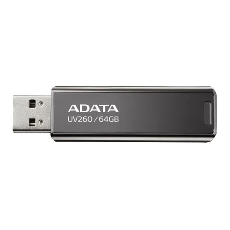 فلش مموریها یکی از وسایل بسیار پرمصرف برای انتقال اطلاعات هستند. فلش مموری ای دیتا مدل UV260 ظرفیت 64 گیگابایت با طراحی زیبا و بدنه استیل و با کیفیت یکی از پرطرفدارترین فلش مموریهای موجود در بازار است. سری UV260، کیفیت ساخت بدنه خوبی دارند و به راحتی و در شرایط سخت هم استقامت بالایی از خود نشان میدهند. UV260 از رابط USB 2.0 برای انتقال اطلاعات استفاده میکند. از ویژگیهای این فلش مموری میتوان به امکان کشویی بودن آن اشاره کرد. انتهای این فلش مموری یک شیار طراحی شده که با استفاده از آن میتوان آن را به بند، دسته کلید یا کولهپشتی وصل کرد و احتمال گم شده آن را تا مقدار زیادی کاهش داد. در مجموع میتوان گفت که UV260 یک فلش مموری ساده و شیک با بدنه مقاوم است.