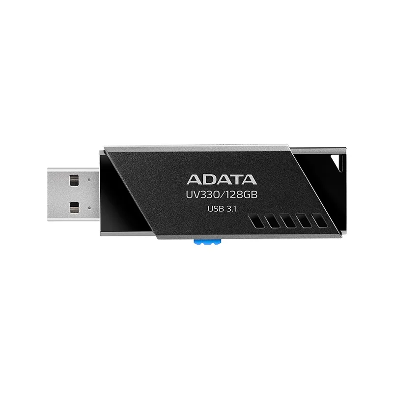 شرکت «ای دیتا» محصولی را با نام «UV330» روانهی بازار کرده که درواقع یک فلشمموری باکیفیت است. این فلشمموری از طریق درگاه USB3.1 به کامپیوتر متصل میشود. درگاه USB3.1 این فلشمموری از نوع A (Type-A) است که میتوان از آن در کامپیوترهایی با درگاه USB2.0 و USB3.0 هم بهره برد. جنس بدنهی این فلشمموری از پلاستیک باکیفیت است که میتواند دربرابر بسیاری از صدمات مقاومت خوبی از خود نشان دهد. در قسمت میانی فلشمموری، یک قسمت پلاستیکی به چشم میخورد که با هدایت آن به قسمت جلوی درگاه USB از بدنهی فلشمموری بیرون میآید و میتوان از آن استفاده کرد