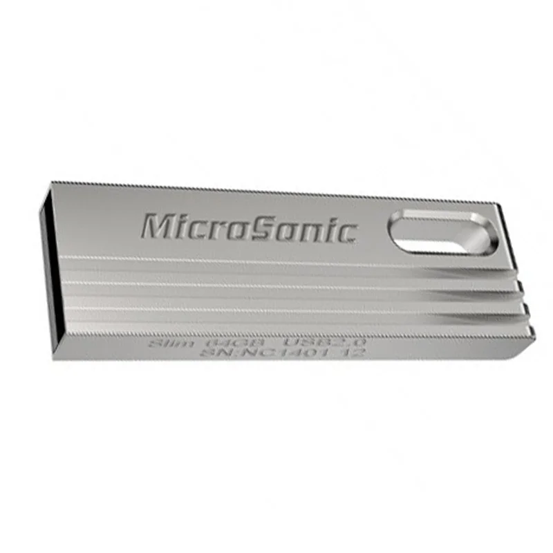 فلش مموری از برند Microsonic مدل SLIM با ظرفیت 128 گیگابایت یک فلش با حجم عالی برای ذخیره سازی اطلاعات کاربران شامل عکس، فیلم، موسیقی و … است. این فلش دارای رابط نوع USB 2.0 برای اتصال به انواع کامپیوتر، لپ تاپ و سایر دستگاه های دارای این پورت بوده و کاربر می تواند داده و اطلاعات مورد نظر خود را از این طریق منتقل نماید. بدنه این محصول از جنس فلز ساخته شده و دارای مقاومت بالایی در برابر رطوبت، ضربه و گرد و غبار است. به منظور جلوگیری از گم شدن این محصول در لبه کناری و انتهای بدنه آن یک سوراخ برای اتصال به جاکلیدی و یا آویزان کردن بند تعبیه شده است.